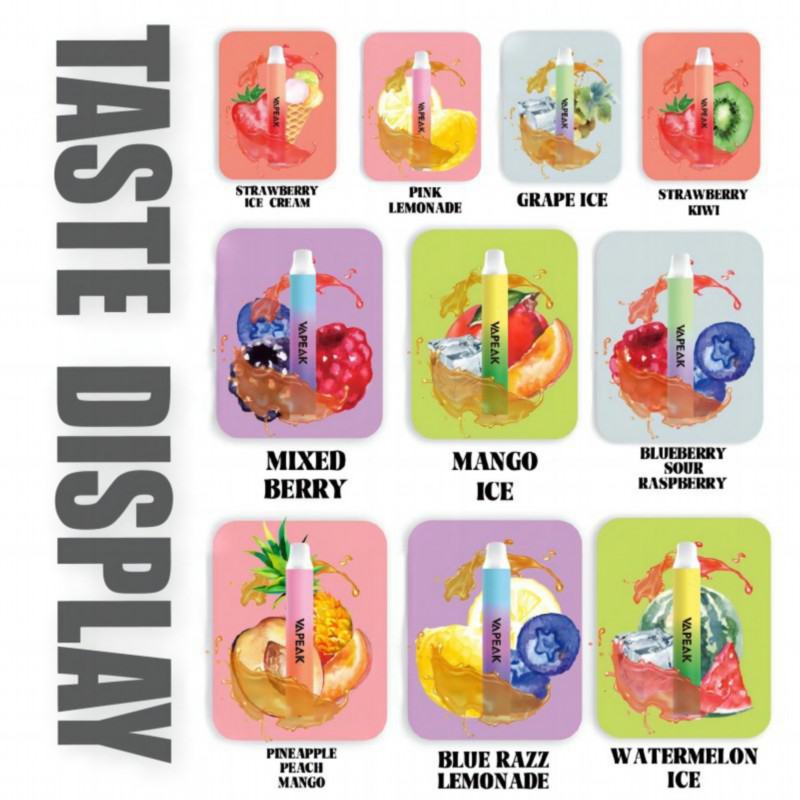 VAPEAK prioritizes your safety. These disposable vapes are crafted with high-quality materials and adhere to strict CE, RoHS, and TPD certifications. Enjoy peace of mind knowing you're vaping a reliable and rigorously tested product.