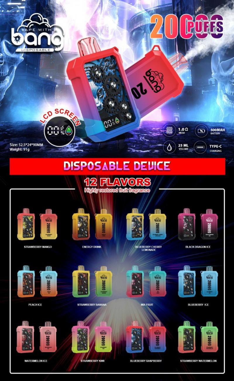 Looking for a vape that can keep up with your busy lifestyle? The Bang 2000 boasts an impressive 20,000 puffs, meaning you can enjoy your favorite flavors for longer. Say goodbye to constant replacements and hello to uninterrupted vaping pleasure.