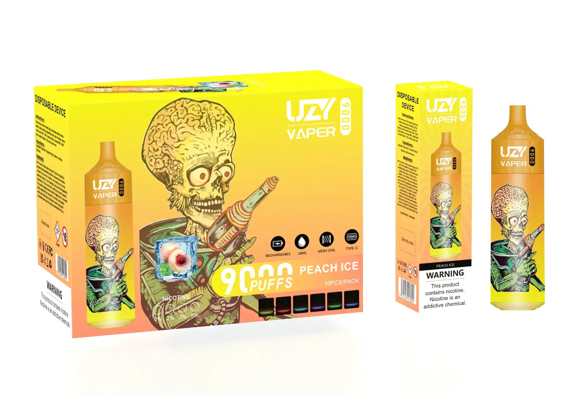 Manufactured in Shenzhen, China, the UZY brand stands for quality and reliability. These disposable vapes are perfect for adults (18+) looking for a middle nicotine strength vape. Moreover, logo printing is available, which makes them great for wholesale distribution or OEM partnerships.