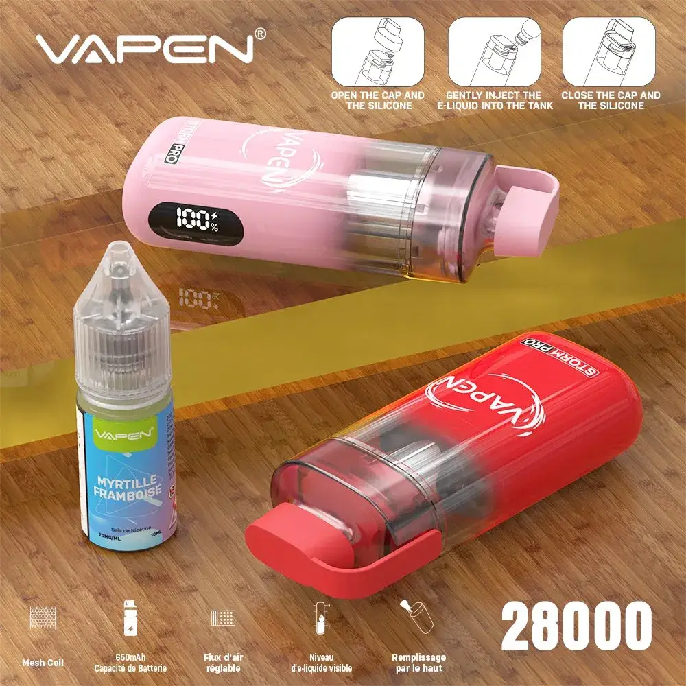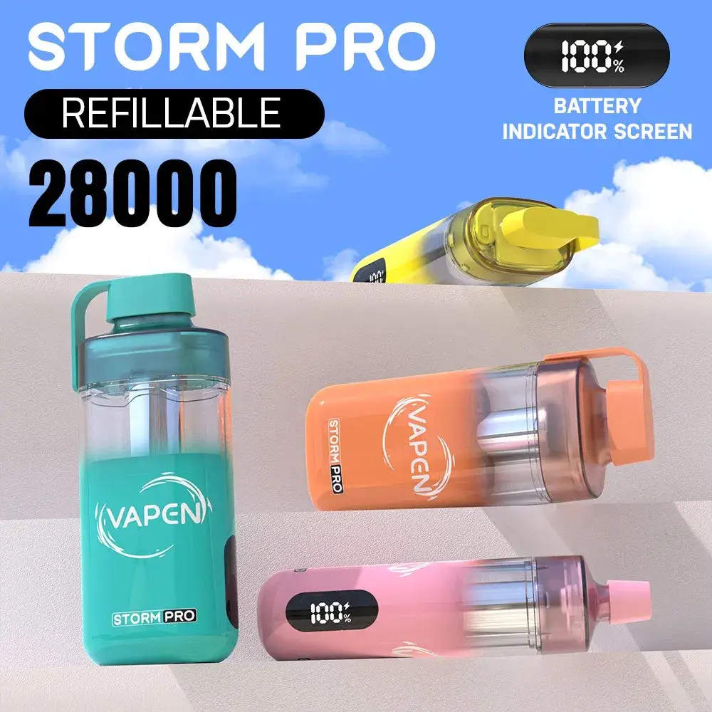 VAPEN STORM PRO is the *Original* disposable *vape* that will blow your mind with its massive 28000 *puffs*. First off, this *pen* supports *OEM* and *ODM*, making it a top choice for *wholesale* *vape* *supplies*. Furthermore, you can enjoy your *vaping* experience with a variety of *popular* *flavors* and adjustable *nicotine* levels (0mg to 50mg). This *E-Cigarette* is *rechargeable* via Type-C, ensuring you get every last drop of that 12ml *juice* with its 650mAh battery, plus it is *cheap*! Finally, being made in a *China* *factory*, this *disposable* *vape* promises quality and affordability.