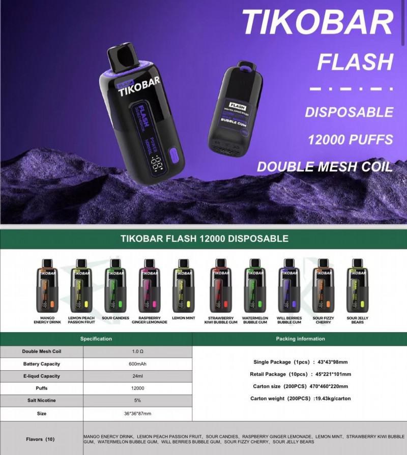 Tikobar flash 12000 Puff is a popular vape device that offers a satisfying vaping experience. With its double mesh coil and battery capacity of 600mAh, it provides a smooth and flavorful hit every time. The e-liquid capacity of 24ml ensures long-lasting vaping sessions without the need for frequent refills.